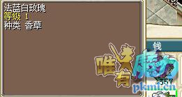 法兰白玫瑰 三种采集技能、任意技能等级都可以采集,“法兰白玫瑰”可以找原“泡点挂机卡贩卖”NPC兑换礼券(1000:1)、金块(500:1)、泡点(1000:1)。