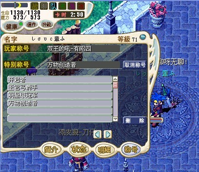 2009年游戏中完成指定大型系列任务获得的绝版永久称号,拥有该称号可截图人物及称号至论坛 勋章申请区 发帖申请。