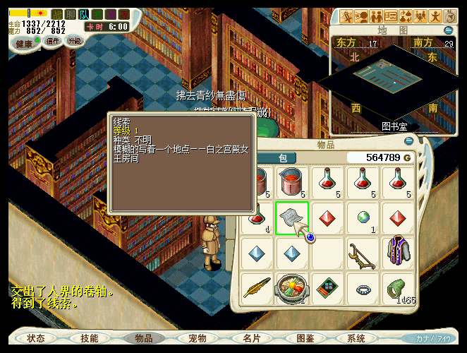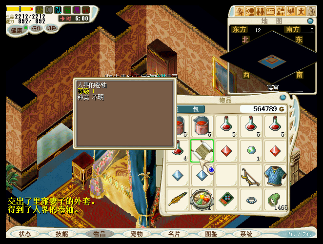 对话后。交出里雍妻子的外套。得到:人界的卷轴