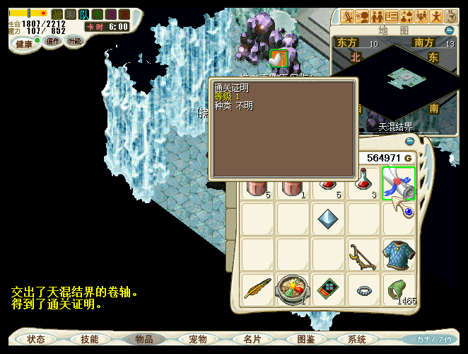战斗结束后。与天混结界的守卫。得到:通关证明