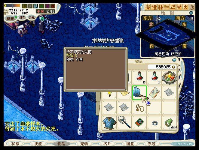 2、与阿鲁巴斯对话后交出【血液样本】获得【永不熄灭的火把】