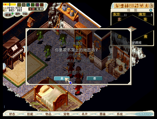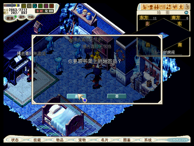 7、分别与他们对话获得【地图线索2】【地图线索3】并分别完成水之洞窟和炎之洞窟任务进入各任务后的谜一般的房间与书架对话获得【地图残缺部分B和C】