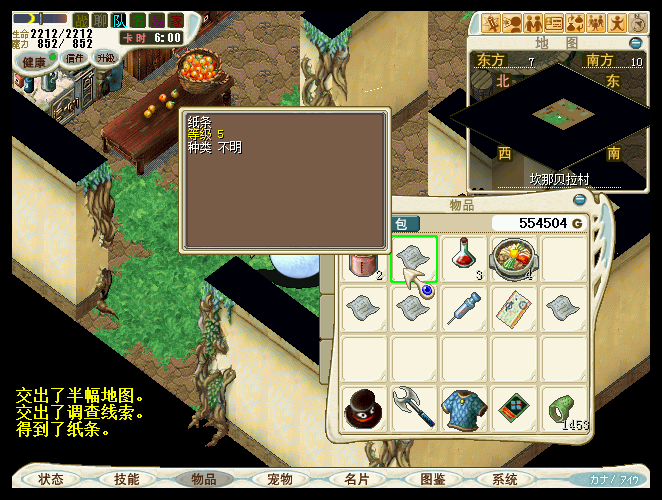 6、与魔力宝贝SF加纳村酒吧里的约翰对话交出【调查线索2】获得【调查线索3】