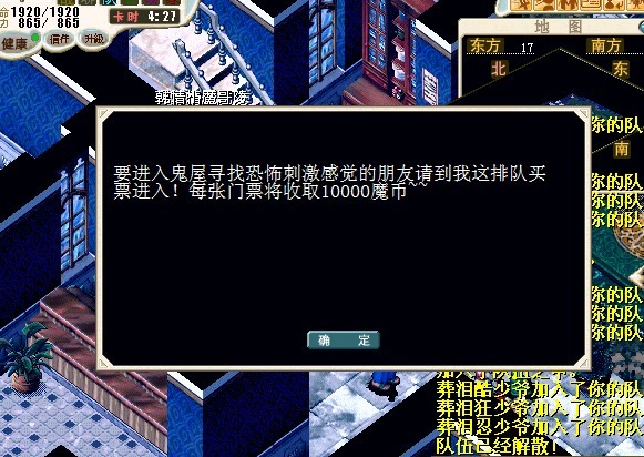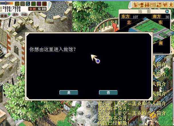 | 3.花费魔币与其购买入场券,进入旅馆2层,现在1W改成5Q MB了 |