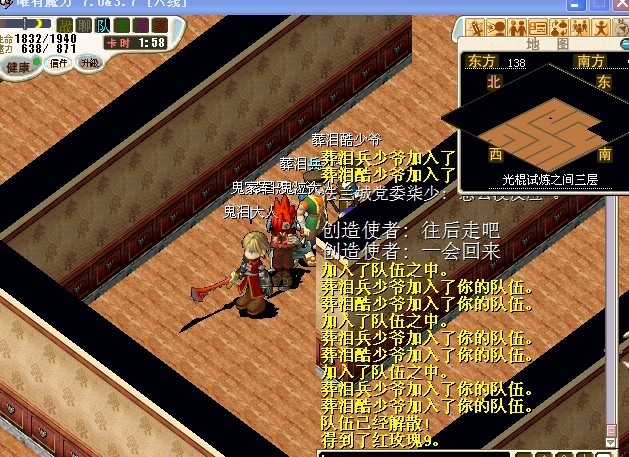 4.对完话后到上后面的楼梯进去迷宫,里面的小怪是40多级的火刀和仙人掌哦注意:拿到徽章就不能登出了