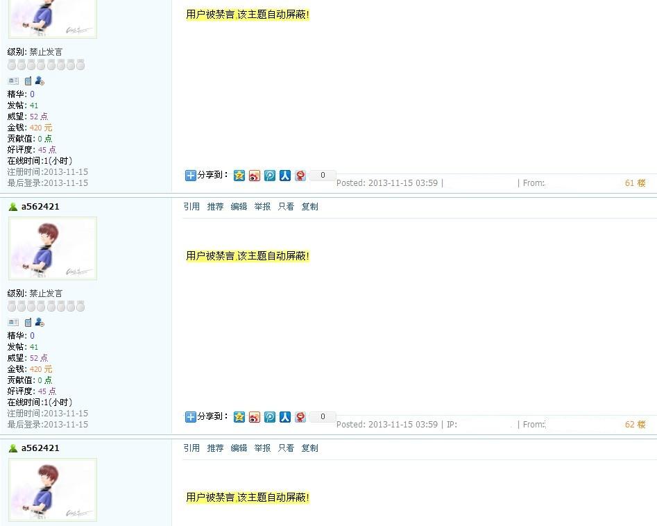 [版规公告] 关于对会员a562421的处罚决定,请其他会员引以为戒。 |
