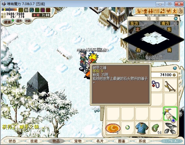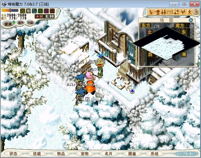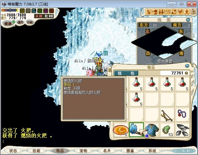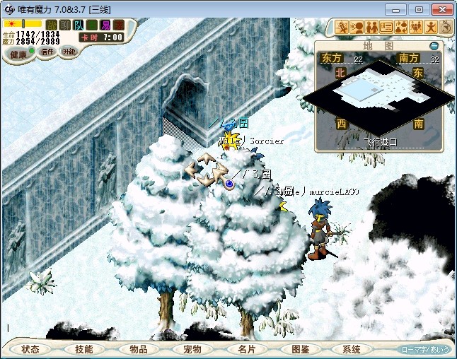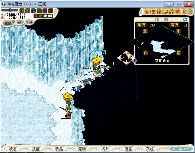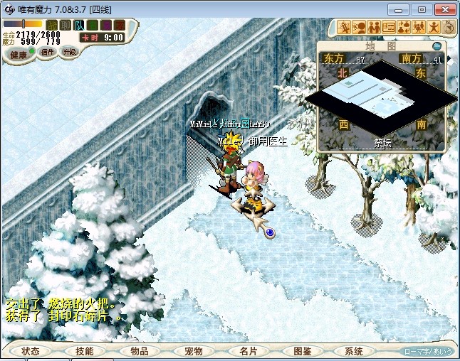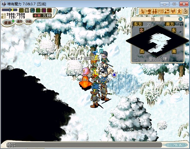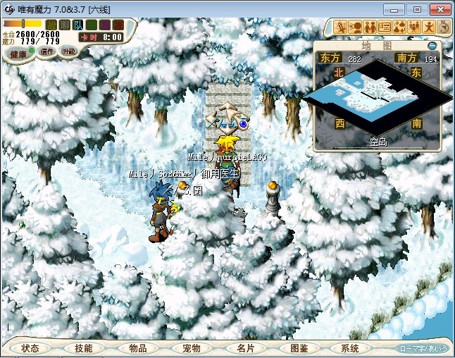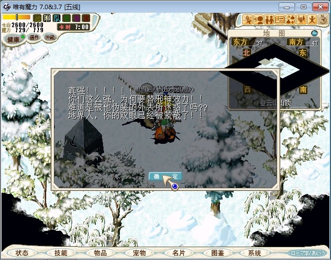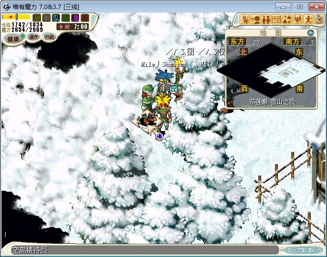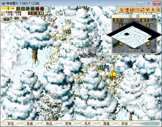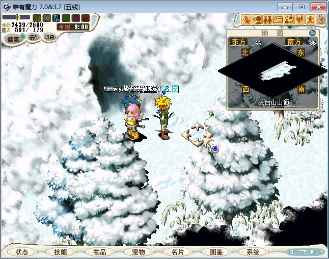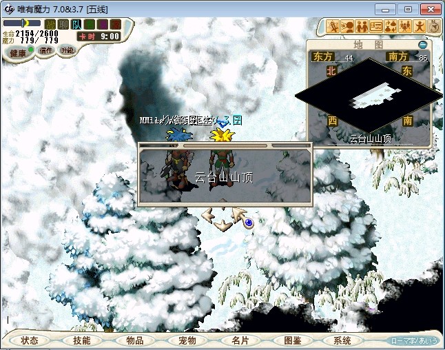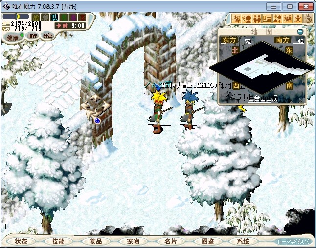 23.进入雪地密林,走到中下方面的山峰处跟不言不说(73.87)对话进入战斗 注:2个BOSS都会抽魔,乾坤,状态攻击。剩下一个的时候会放气功弹 建议打法:直接合击