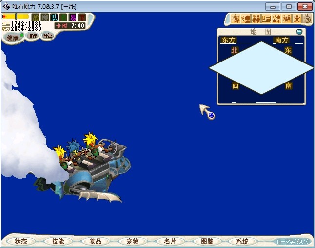 8.到空岛野外,荒屋附近随机遇到风行鸟,战斗胜利会掉落风行鸟的羽毛(只有4,5线可以遇敌) 注:风行鸟需要持有华丽的帽子才能遇到,风行鸟的羽毛每个队员都必须持有,羽毛不能交易