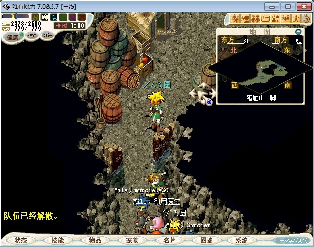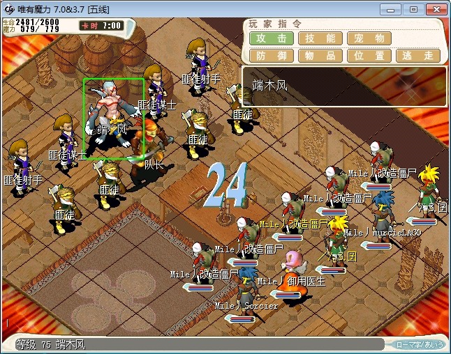 13.走到山寨大厅(26.50)跟端木风(17.9)对话进入战斗 注:弓手会乱射,超咒。 谋士会全体即死,超咒,超补。 端木风会诸刃,气功弹,连击,反击 队长会状态攻击,连击,乾坤 (人物中咒率挺高的,可以用毒击打,毒一下400多血) 建议打法:人合匪徒,2个宠物毒击谋士,3个宠物合计谋士,先把2个谋士杀死,然后再杀弓手
