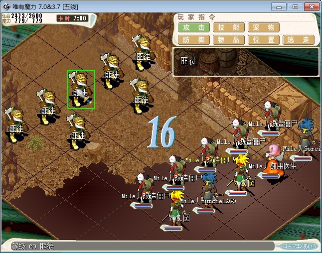 26.战斗胜利后,和苍术对话,再和本葬对话发生战斗 注:马辛:抽魔,反击,气功弹 八角:乱射,阳炎 常山:状态攻击,暗杀 羊角:超补,超咒 雷音:超魔法,单体魔法,吸血魔法 乌头:诸刃,反击 苍术:阳炎,乱射 寒:乾坤,崩击 建议打法:抽白英和羊角魔,先合常山,雷音,寒