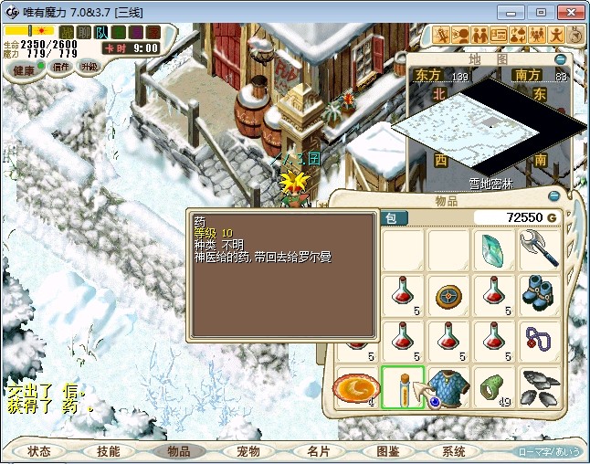 45.去雪地密林深处神医居所跟神医对话,再跟木姜子对话,然后再跟神医对话得到药 注:雪地密林进入方法同空岛2,对着神树说咒语:神树之灵,以吾之血祭奠,为吾开启密林之路