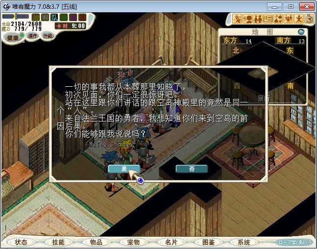 7.回到空岛部落,去万事通元风的家(68.47)跟万事通的元风(16.17)对话,得到华丽的帽子