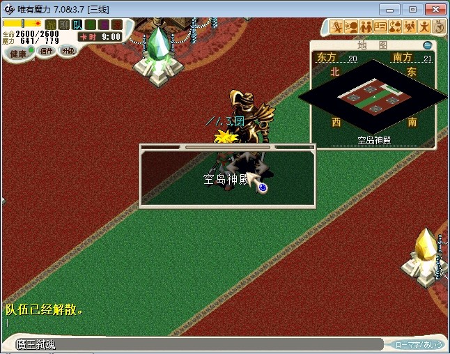 40.走到祭坛顶层,跟本葬对话进入战斗 注:这次本葬为2连战,开打前请注意所有号的血,魔保持满的状态 更要注意的是,请检查你的电脑电量是否过低,网络是否稳定,鼠标是否有电 我打这2连战,打了1小时15分,差不多睡着了 BOSS技能:雷音(超咒,强力魔法,超强魔法) 八角(乾坤,阳炎,乱射) 本葬(连击,诸刃,大地之怒) 寒(抽魔,连击,护卫,崩击,状态攻击,阳炎) 白英(单体补血,单体恢复,攻击无效) 建议打法:抽魔,顺序雷音,白英,寒,人合本葬