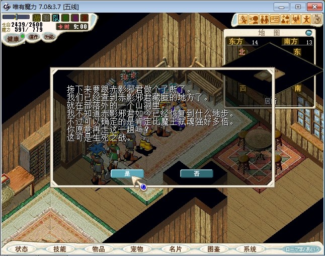 55.对话假的第八代王君(21.21)切换画面,重新组队对话魔王弑魂进入战斗 注:BOSS会连击,圣盾,10级超魔,状态攻击,明镜