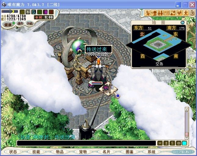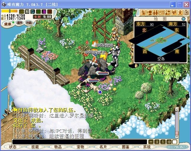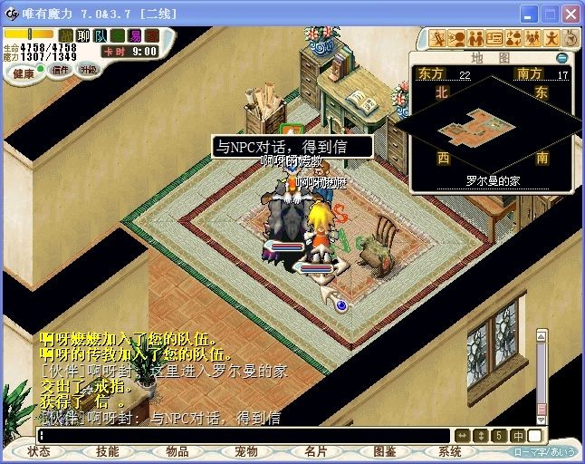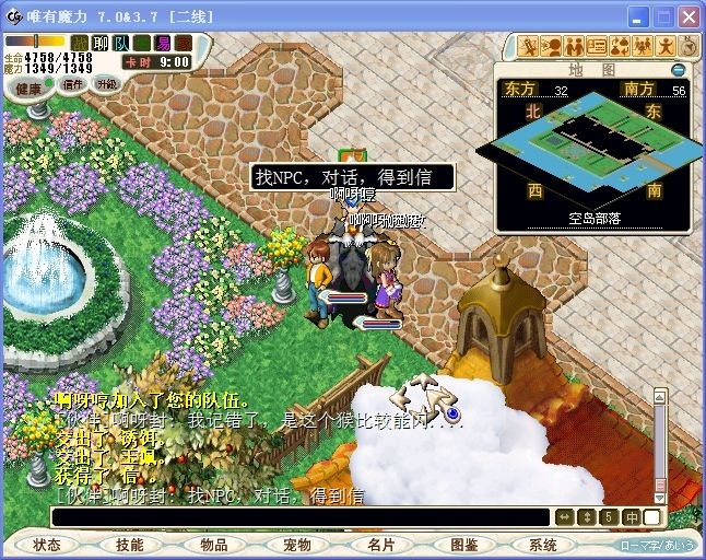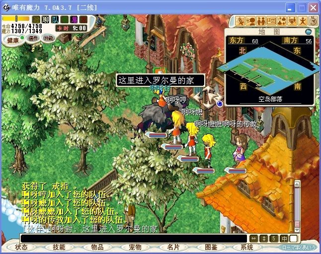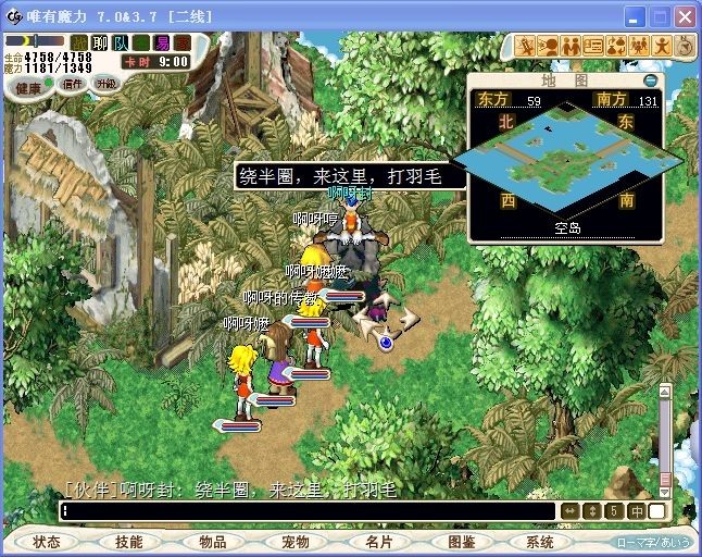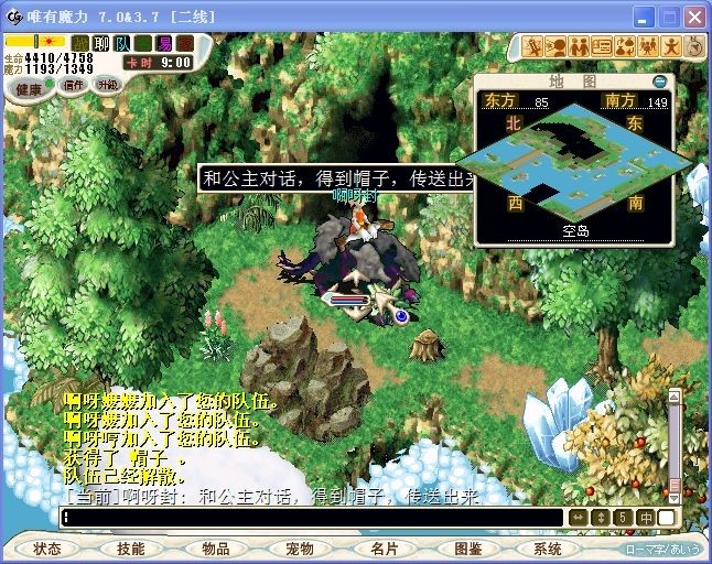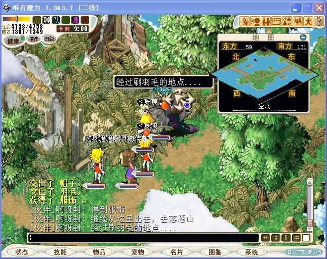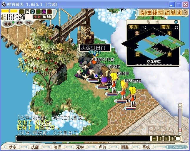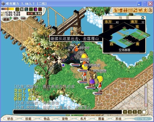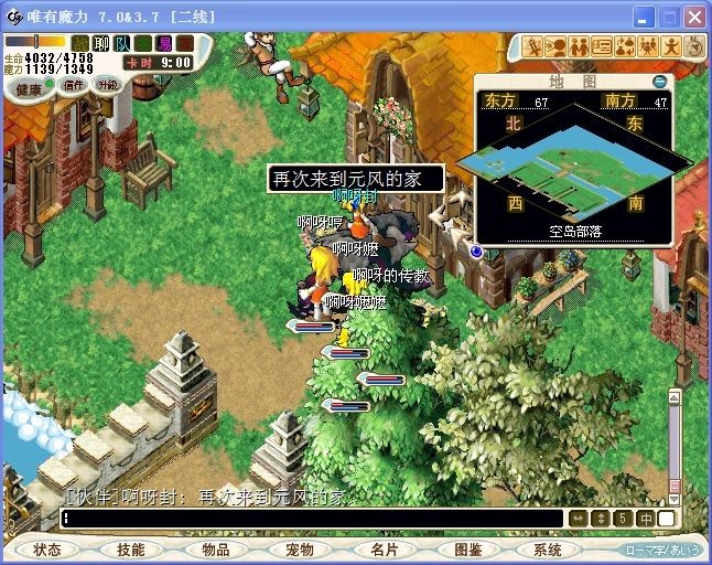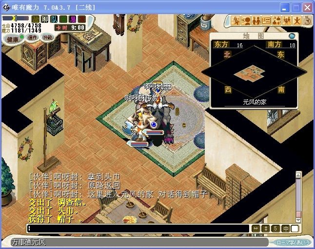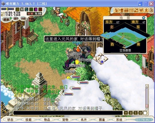 7.回到空岛部落,去万事通元风的家(68.47)跟万事通的元风(16.17)对话,得到华丽的帽子。
