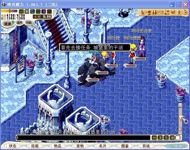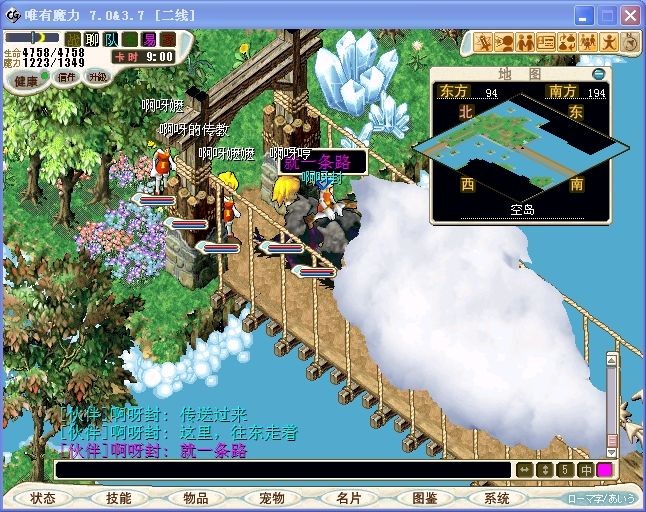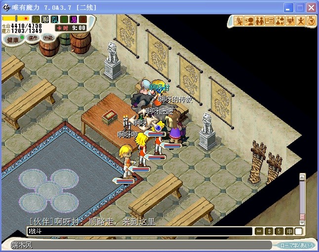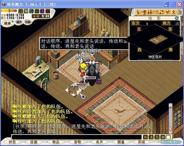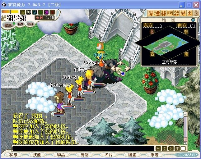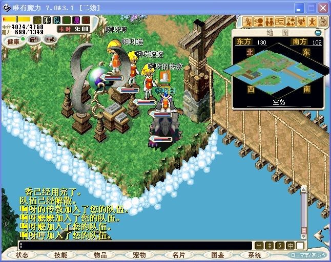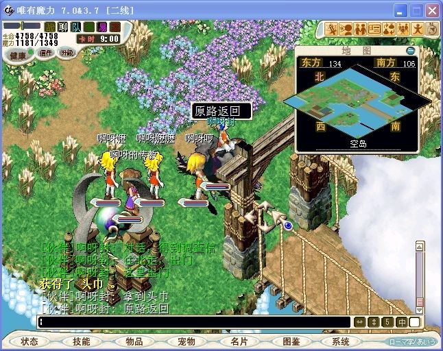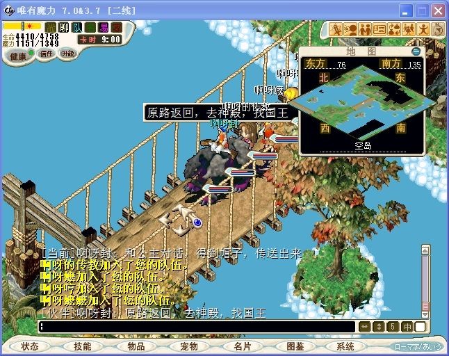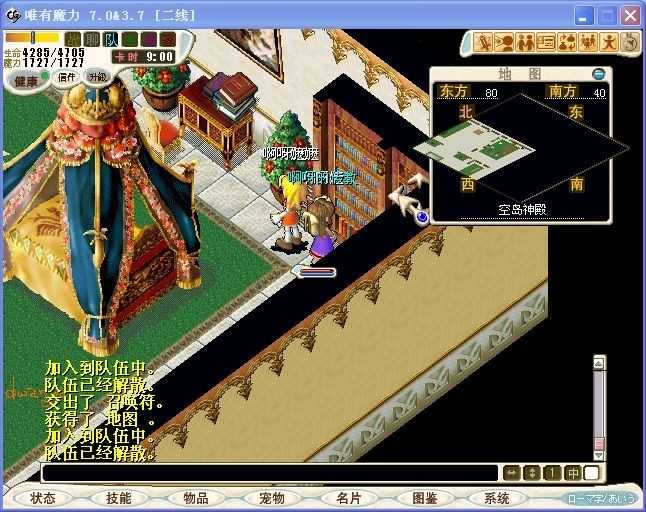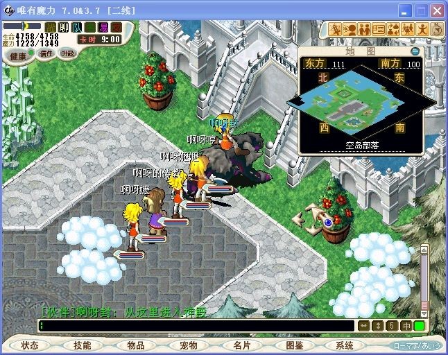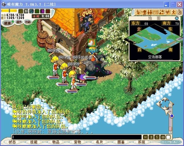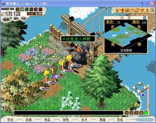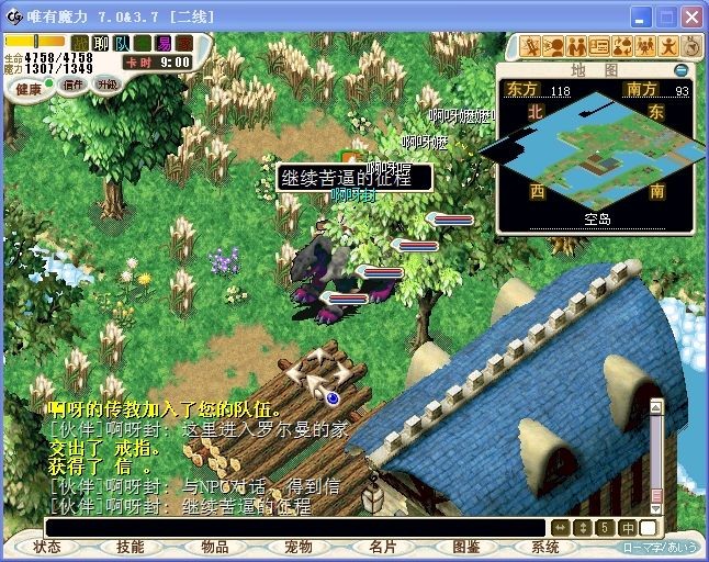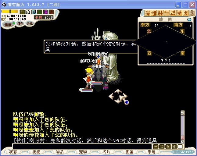 7.回到空岛部落,去万事通元风的家(68.47)跟万事通的元风(16.17)对话,得到华丽的帽子。