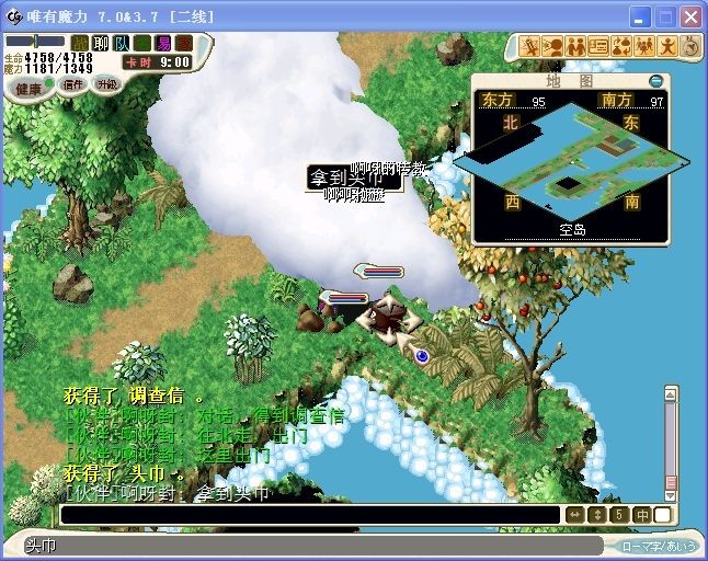 6.走到空岛野外(95.98)调查头巾,得到奇怪的头巾。