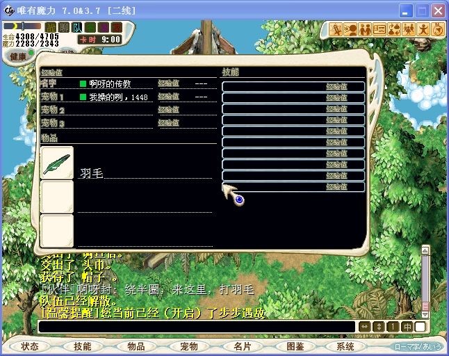 8.到空岛野外,荒屋附近随机遇到风行鸟,战斗胜利会掉落风行鸟的羽毛。