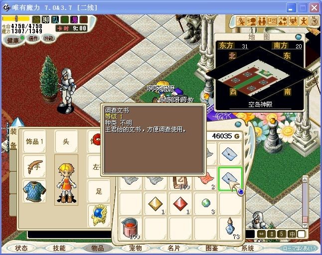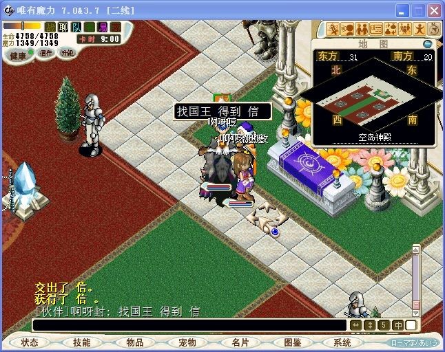 31.回去跟木同对话得到信,到空岛王宫跟王君对话得到调查信。