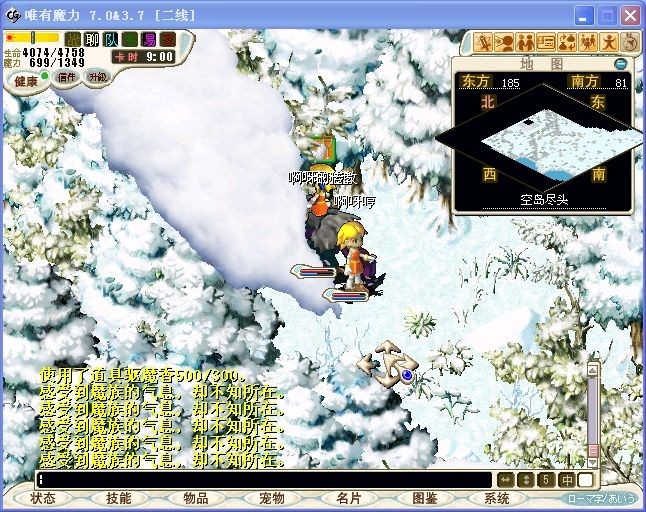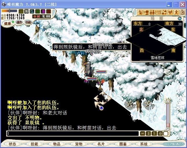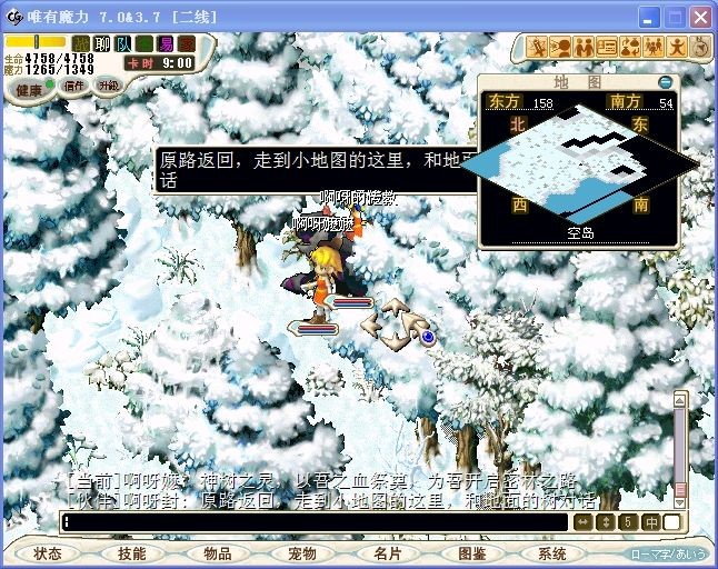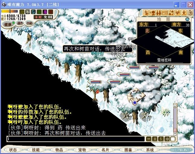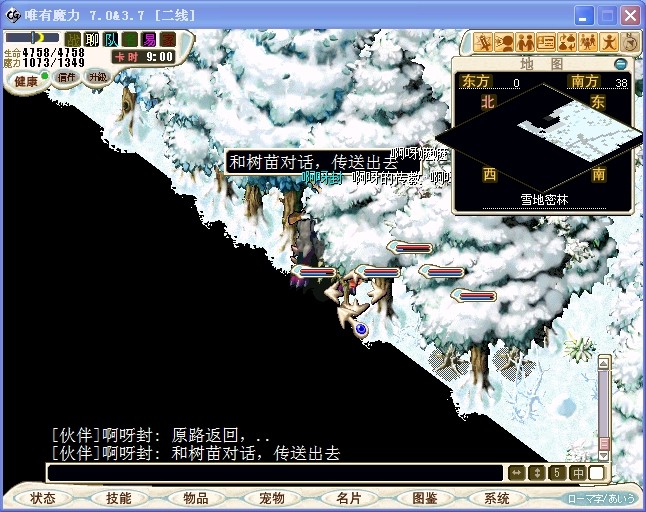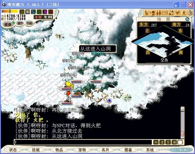 23.进入雪地密林,走到中下方面的山峰处跟不言不说(73.87)对话进入战斗