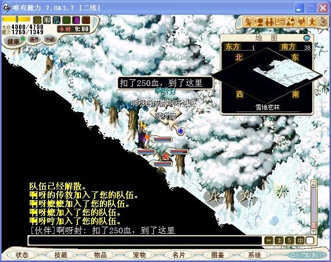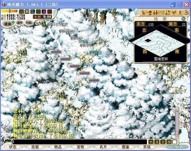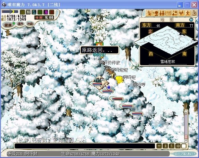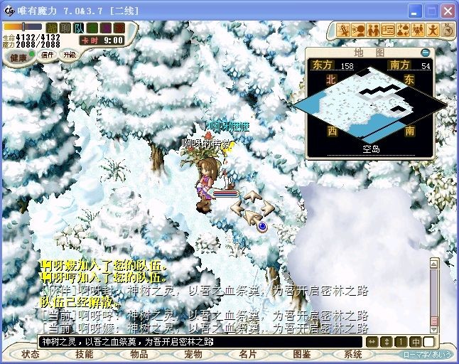 22.回到雪地(158.53)对着神树说咒语进入雪地密林 注:咒语:神树之灵,以吾之血祭奠,为吾开启密林之路 注:进入会被扣除250血,请注意自身血量