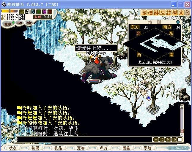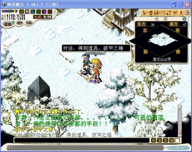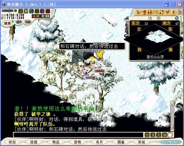 24.跟不言不说战斗胜利进入登云山,爬到山腰跟特尔对话传送,往前走遇到马辛对话进入战斗 注:马辛 格斗士一枚,小BOSS