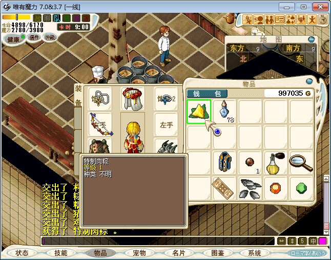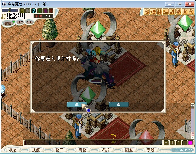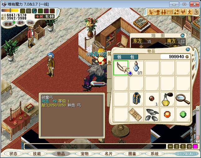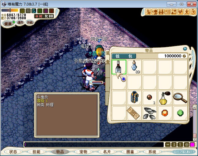10000魔币(用于各村传送以及任务需求,因为不能登出,所以善用传送石!)