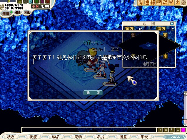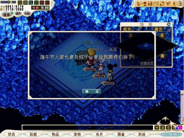3、来到池塘底层,与蛤蟆对话,进入战斗(PS:迷宫共5层,怪物为150级水龙蜥和蜥蜴战士)*(PS:BOSS大概30000血左右,已知技能:攻反,超冰,连击)
