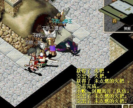 13、将上述2步所获得的最后2把未点燃的火把交易给队长
