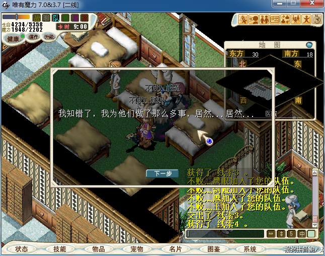 9、与港湾处的空月和傲月对话进入战斗(这个BOSS不难打。打牛暴击1000.少微有点痛啊。。)