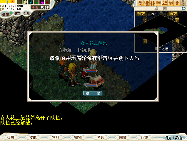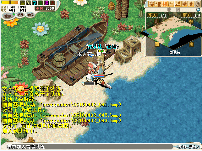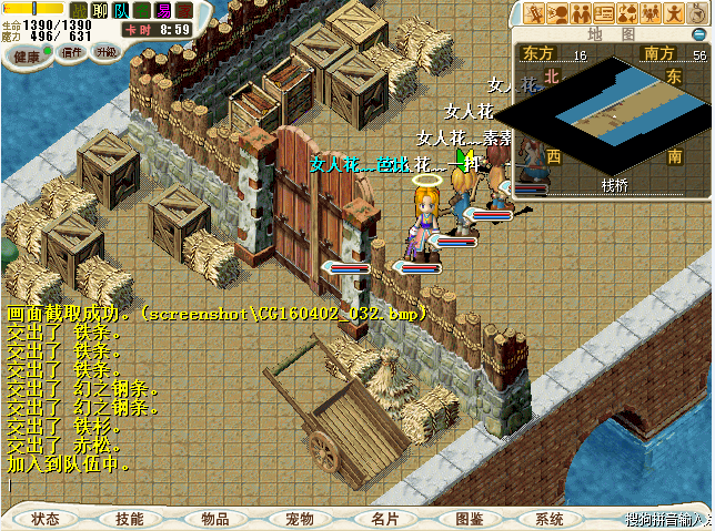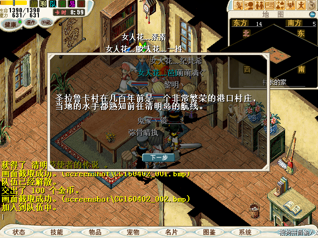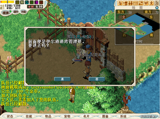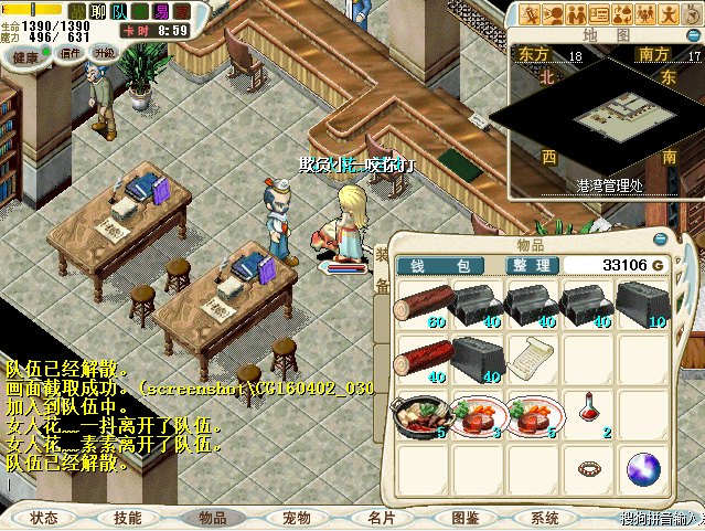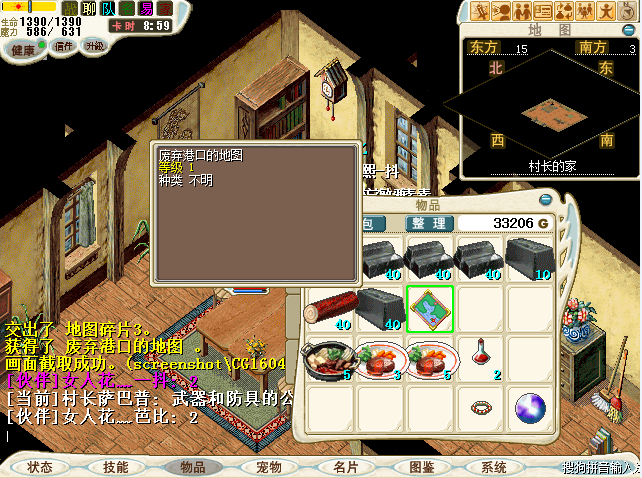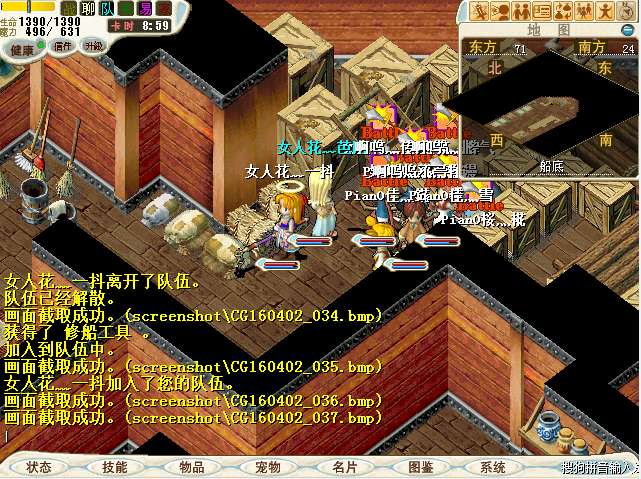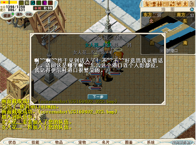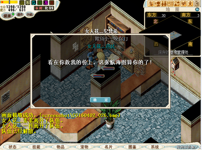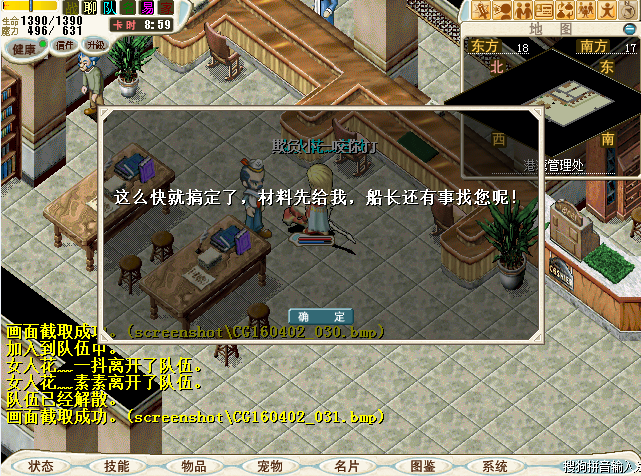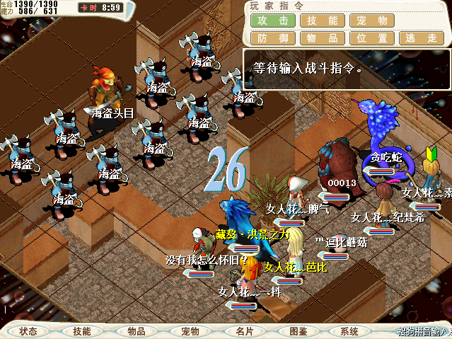 7、在港口管理处找到助手加尔(28.4)后遇到海盗进入战斗(海盗头目55级,小怪25级,无难度,人群攻、宠合击就行了)