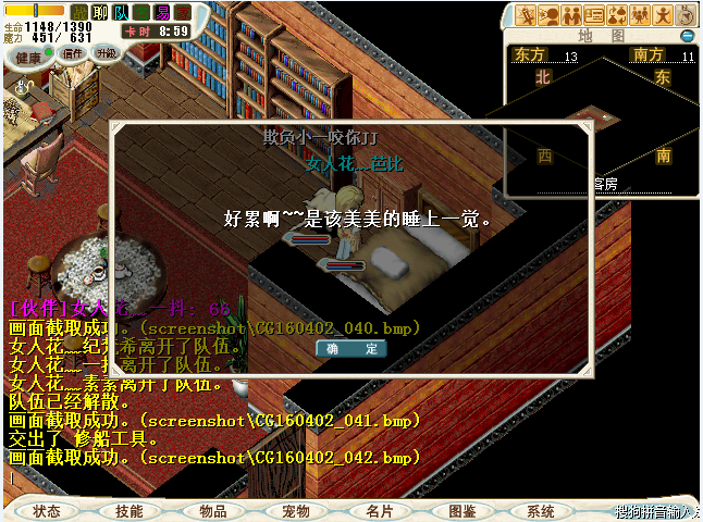 15、点击客房床铺(13.11)后,一阵头晕后,躺在了清明岛上