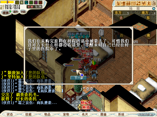 3.与圣拉鲁卡村医院的吉普力对话输入【商队遭袭...】 ,获得【记录事件信息1】