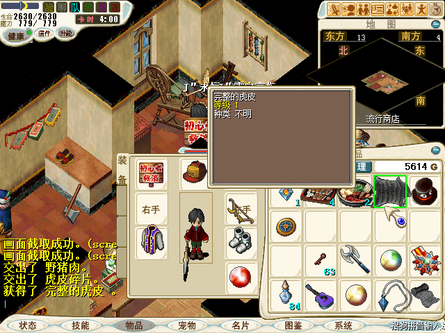 11.当身上有老虎皮碎片20张时,与法兰流行商店的安希阿姨对话,交出老虎皮碎片20张,获得完整的虎皮