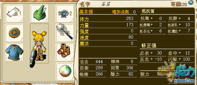 使用技能:吸血攻击(200)、吸血魔法(300)、攻击吸收/反弹/无效、单体即死、四属性强力魔法(250)、四属性超强魔法(200)