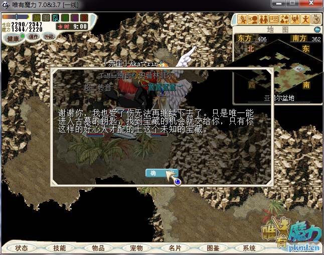 12、拿着背包和求救信与寻宝猎人对话获得古墓钥匙