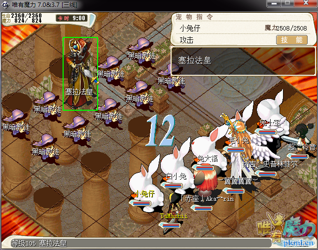 技能:召唤,全体魔法,全体补血(1400血左右)