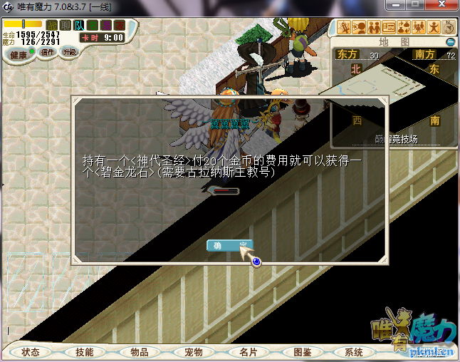 怀旧区:持有<神代圣经>到娱乐竞技场坐标32.72找NPC支付20金币后可以换取<碧金龙石>