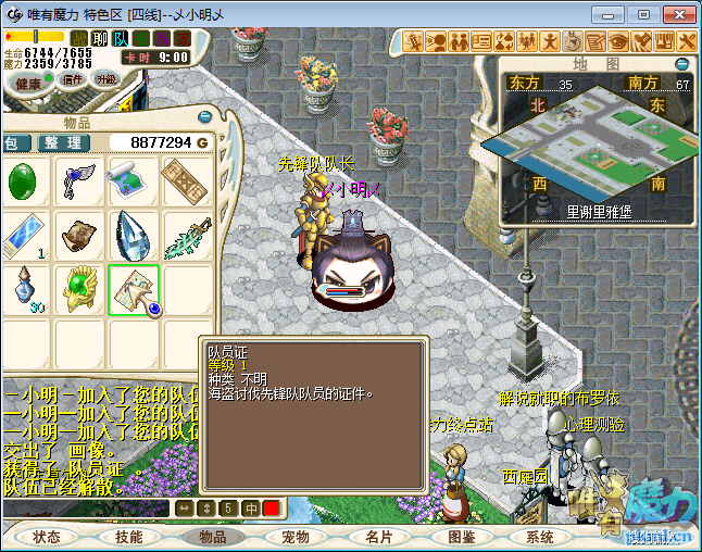 4、战胜后传送到里谢里雅堡.先锋队队长对话得到队员证(若身上无画像则无法获得队员证)