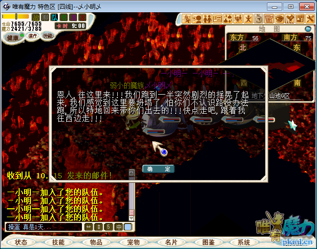 10、与怪兽???对话进入战斗,胜利后与先锋队队长对话.然后继续往前走10层迷宫下山。