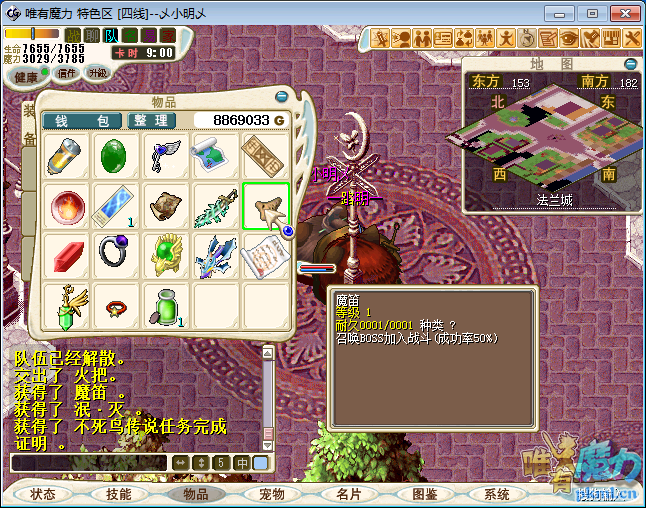 魔笛 可以召唤一只BOSS加入战斗(魔笛 功能暂未实现,下次更新登陆器后实现)