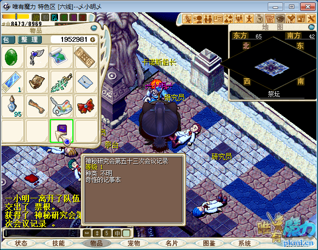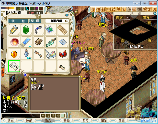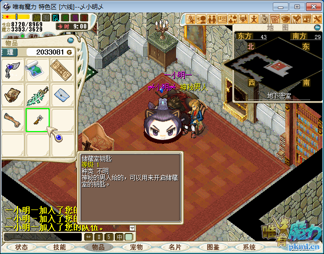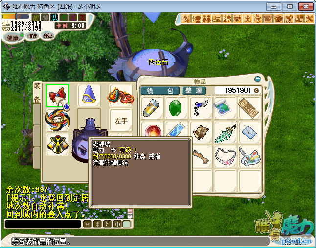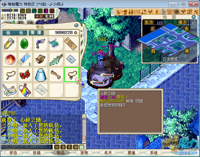 注意:部分道具登出或掉线消失.留意背包空间