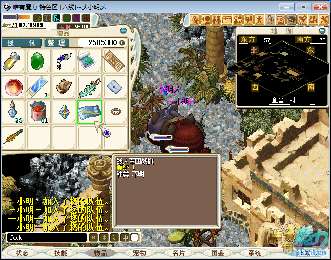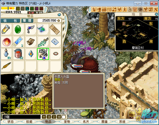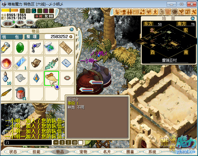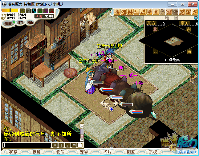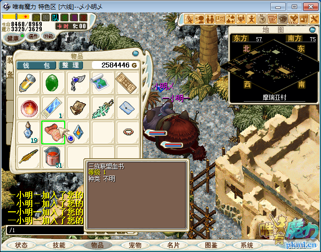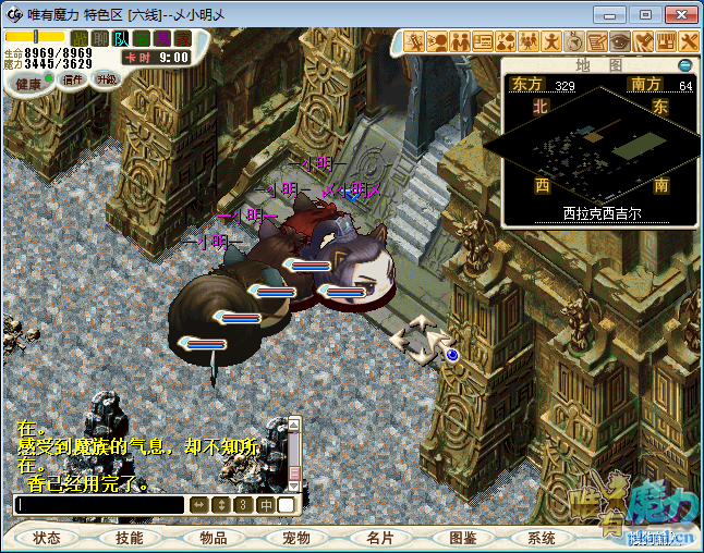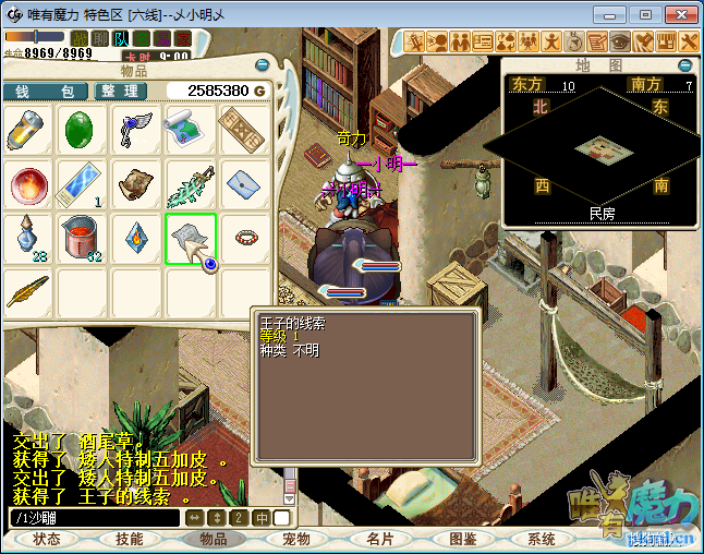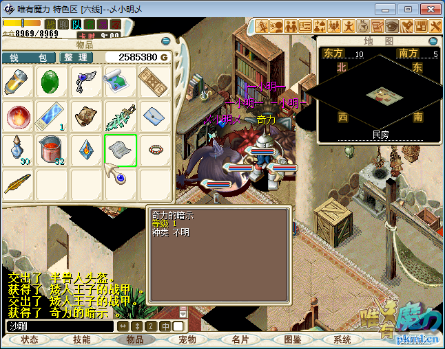49.前往民房(34.60)与人族宰相乌欧牟对话,遇到刺客阿戴夫,进入战斗(没用祈祷和减攻舞蹈下,伤害2000-4000.召唤小怪)