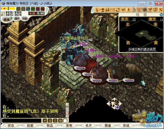 18.然后来到(127.50)处点击石柱放入太阳石进入多瑞亚斯的遗迹 19.底层与亡灵黑骑士安格玛对话,进入战斗 BOSS能力一般,召唤小怪,BOSS先死小怪自爆