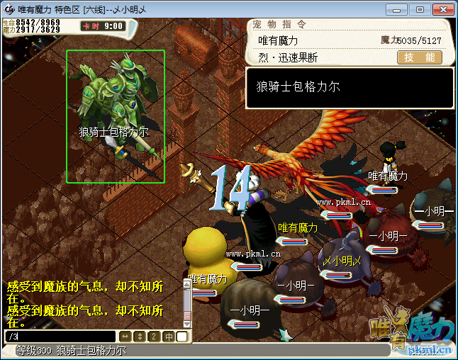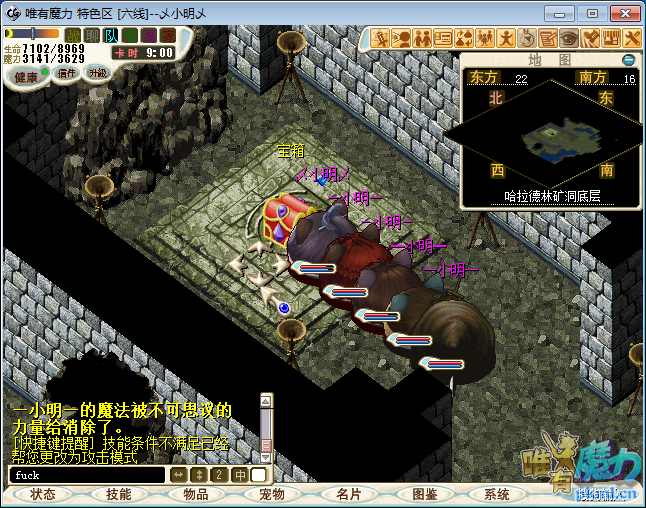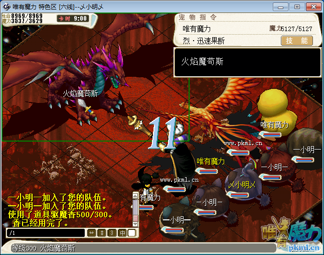 58.宫殿深处与炎魔之王葛斯摩对话,进入二连战,没用祈祷和减攻舞蹈下, 第一战:BOSS召唤小怪.超强恢复魔法.伤害2000+。小怪强力状态魔法,即死 第二战:普攻非R2800+,气功非R2800+,乾坤非R9300+,超强魔法500+