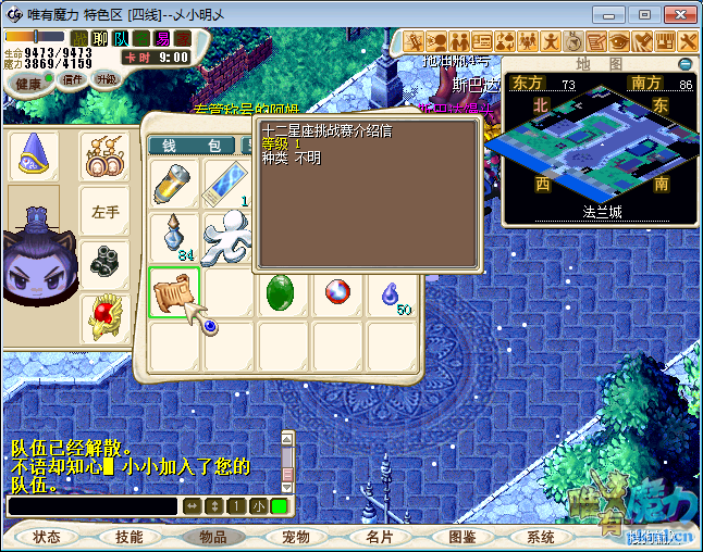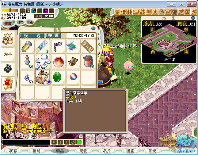 创意区:迷宫GPS导航、全效驱魔香、强化石、VIP宠满档罐头、宠物重生药水、道具耐久修补剂、高等就职、八卦石、宠修正灵丹、宠物抗性药水、宠物护甲LV1