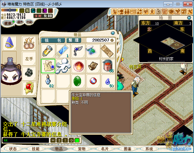 8、根据提示来到魔法大学里面的家畜小屋(54.147),与牛二宝对话得知牛大宝为了谈恋爱没有时间去参加十二星座挑战比赛,需要找一位高手替本门出征。
