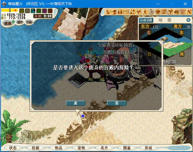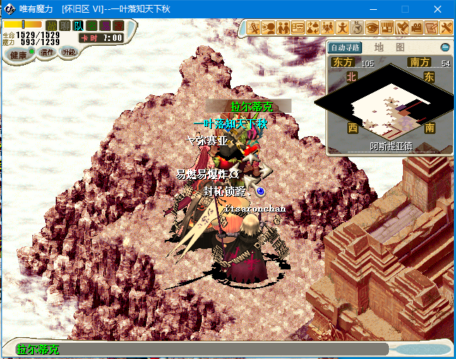 5、在阿斯提亚镇的神殿旁与拉尔蒂克(105,54)汇合,进入谜之遗迹