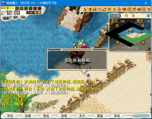 1、进入艾克西利欧岛(152,145)的民房(先知处),与其对话,跟监察军进入战斗