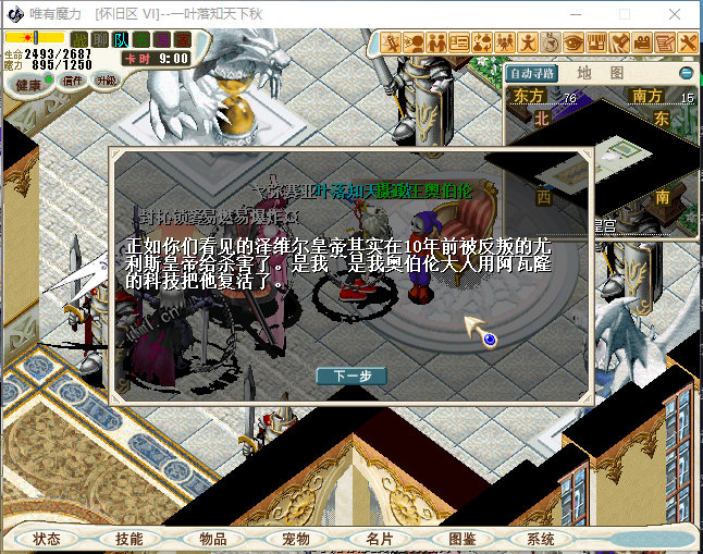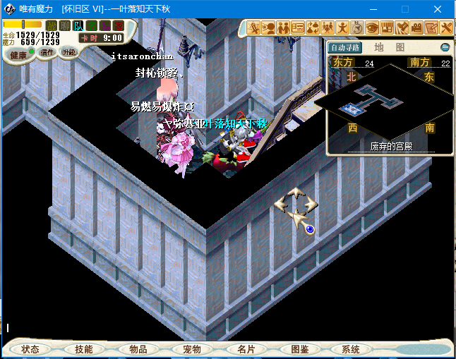 6、往北走,来到(169,35)处,拥有线索3可右键楼梯进入废弃的皇宫